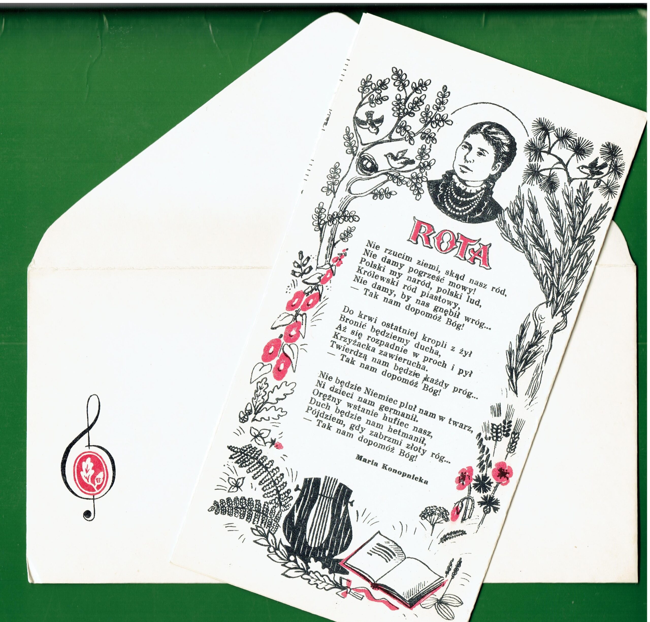 Pamiątki rodzinne stare papeterie i inne z rodzinnych zbiorów – ,,SYRENA” – 10 Widoków powojennej Warszawy , ,,LISTY POLSKIE” – słowa plus zapis muzyczny 6-ciu patriotycznych pieśni ,,Bogurodzica”, ,,Jeszcze Polska nie zginęła”, ,,Warszawianka”, ,,Boże coś Polskę”, ,,Miłość Ojczyzny”, ,,Rota”